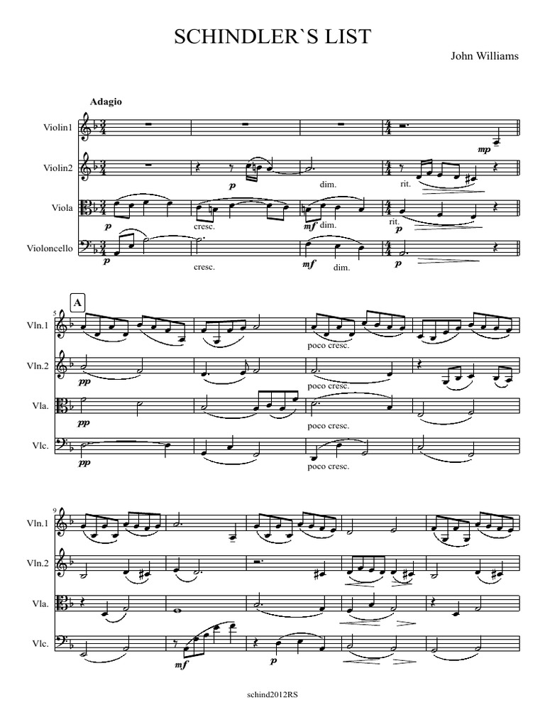 Williams J Schindler S List Score Stringquartet Pdf Tempo Poetics